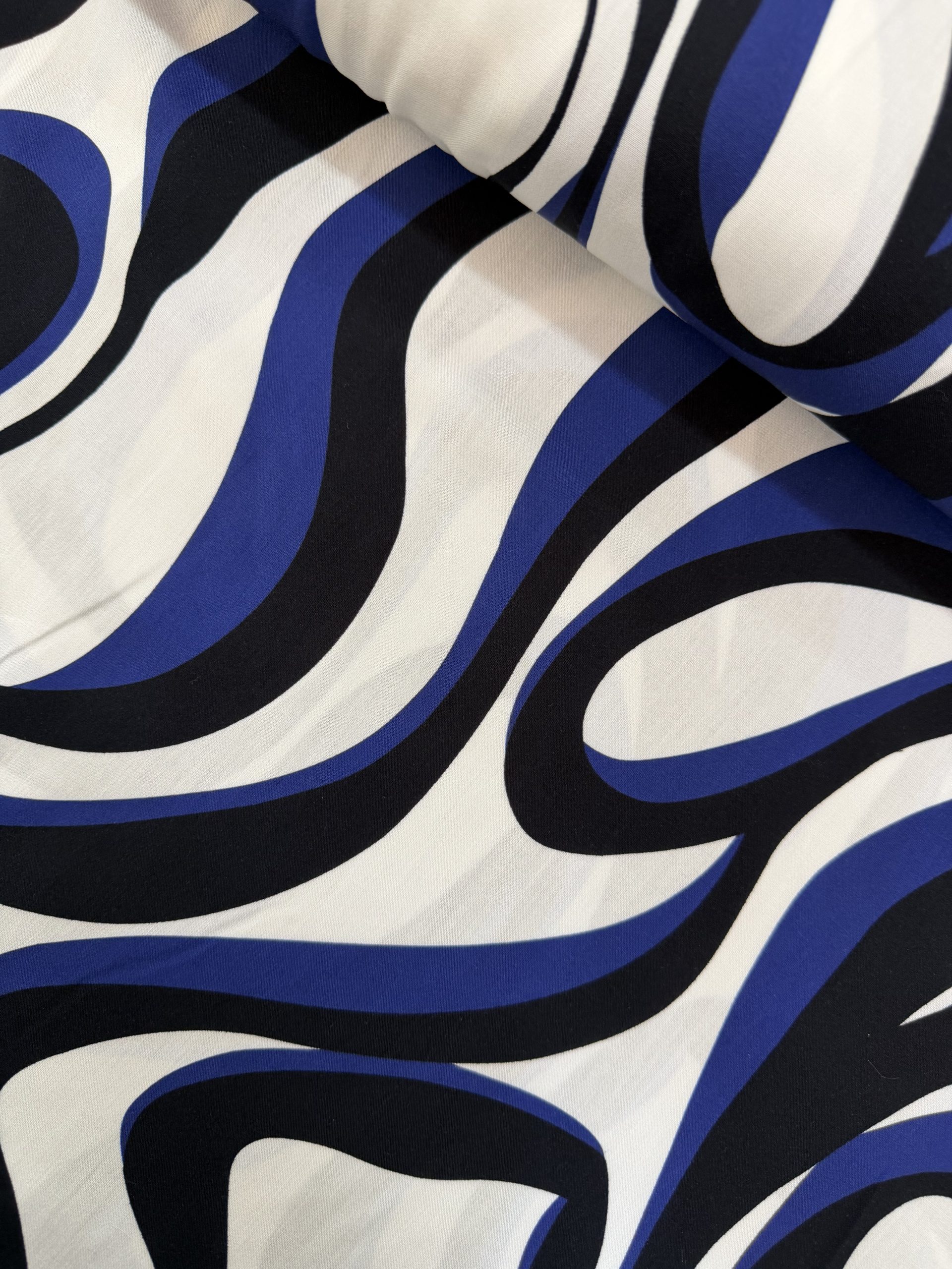 Blue and Black Abstract Viscose