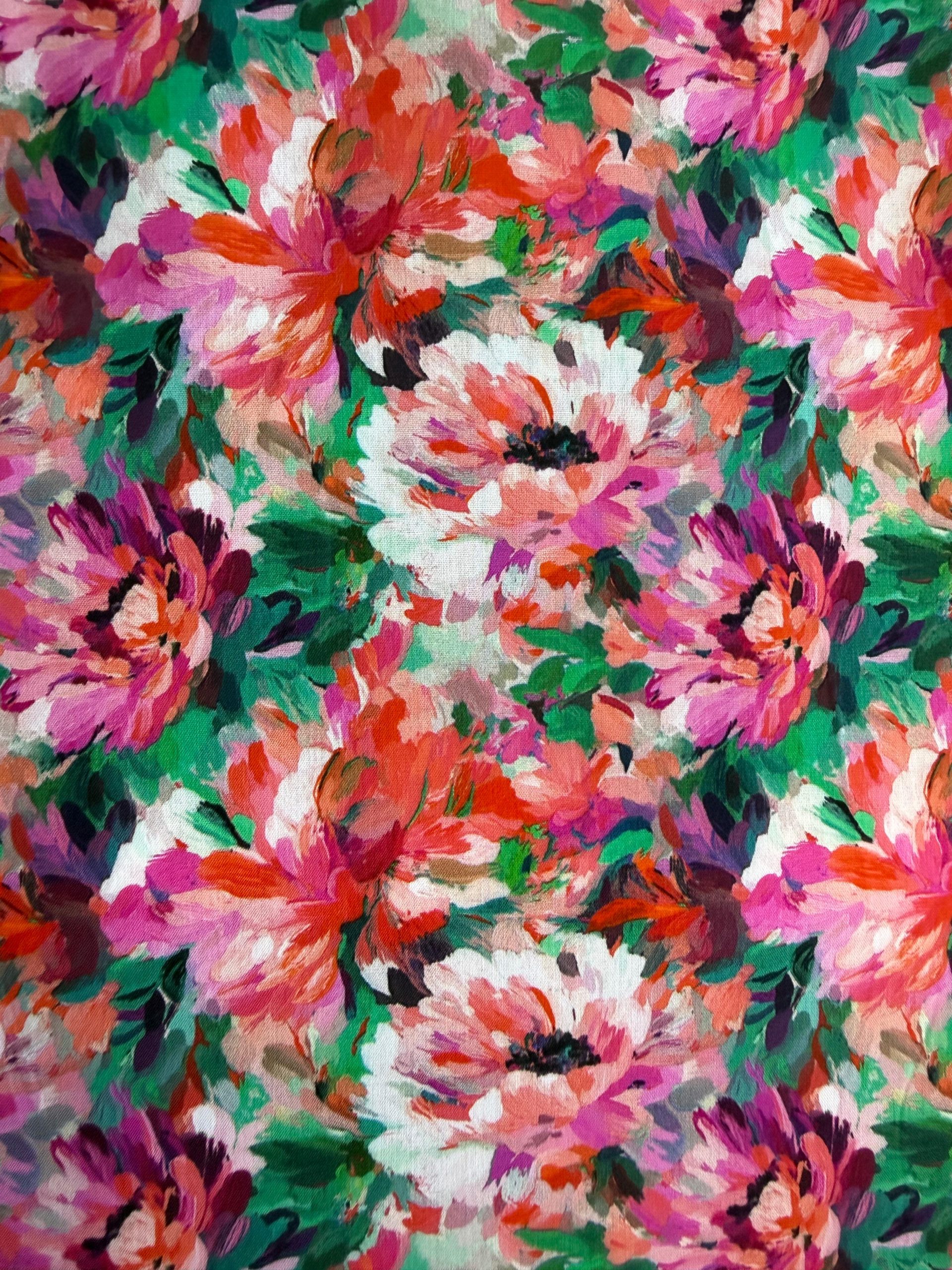 Pink Watercolour Flowers Viscose